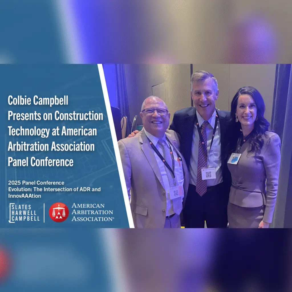 Colbie Campbell presented on the topic of “Construction Technology: What Arbitrators Need to Know About New Technology in Construction Projects” at the AAA-ICDR 2025 Panel Conference held at the Omni Hotel in Dallas, Texas.