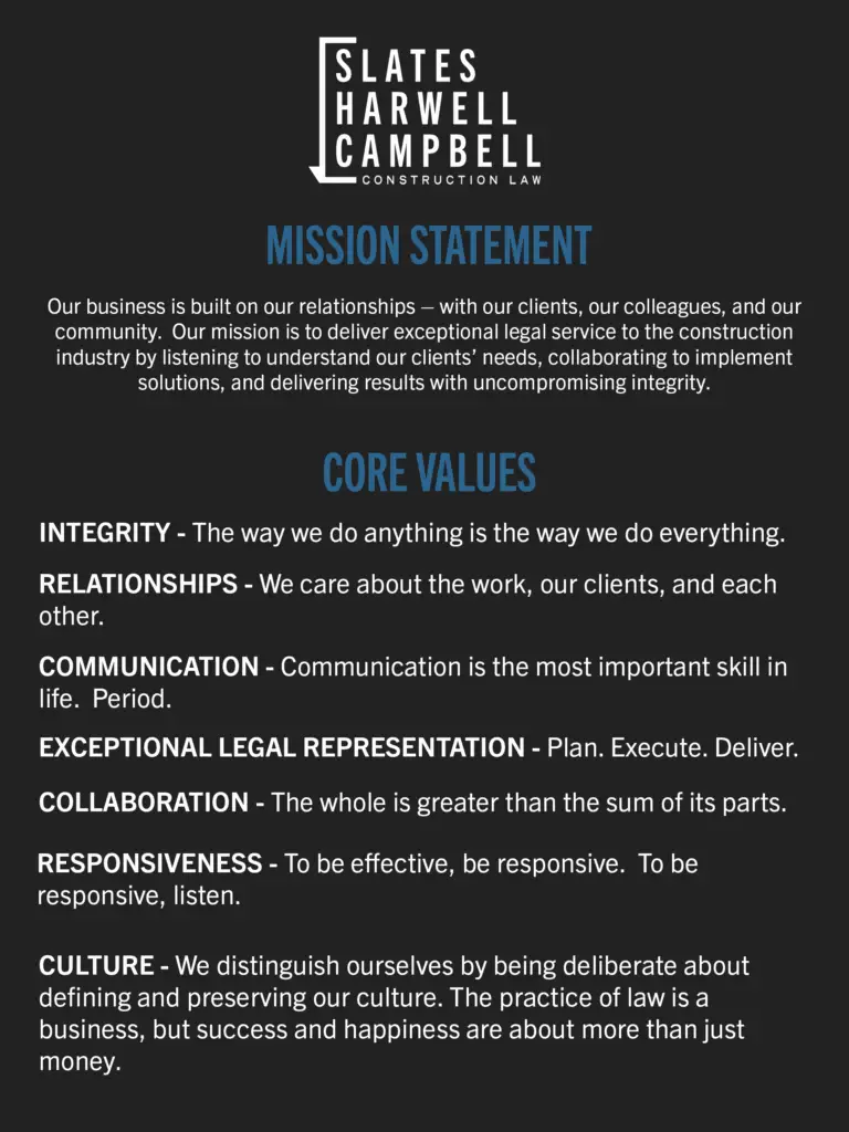 After 45 years of collective experience practicing construction law with one of the largest firms in Texas, we formed Slates Harwell Campbell to bring the pedigree of big-firm experience and construction law expertise to the flexibility of a boutique platform.